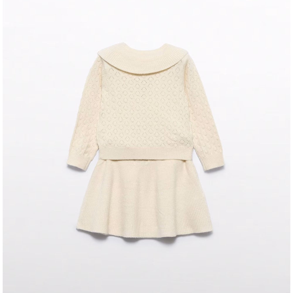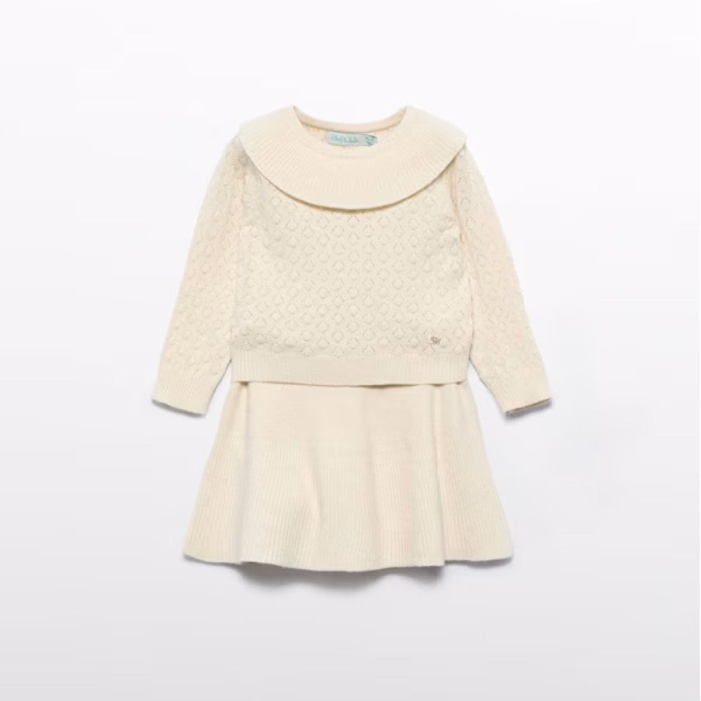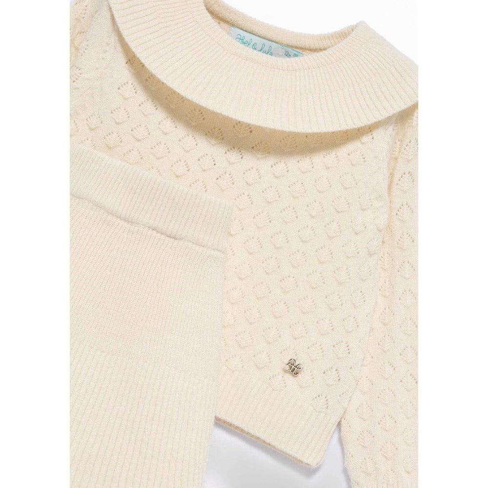 Abel & Lula Kışlık Kız Bebek Örme Bluz Etek Set Ekru