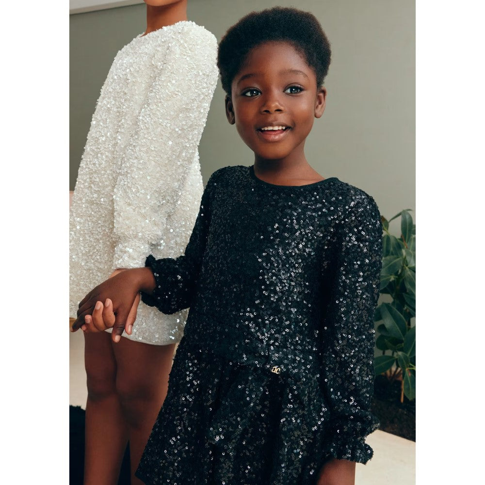 Pullu Detaylar: Elbisenin üst kısmındaki pul detayları, elbiseye ışıltılı ve şık bir görünüm kazandırır, çocuğunuzun tarzını tamamlar.