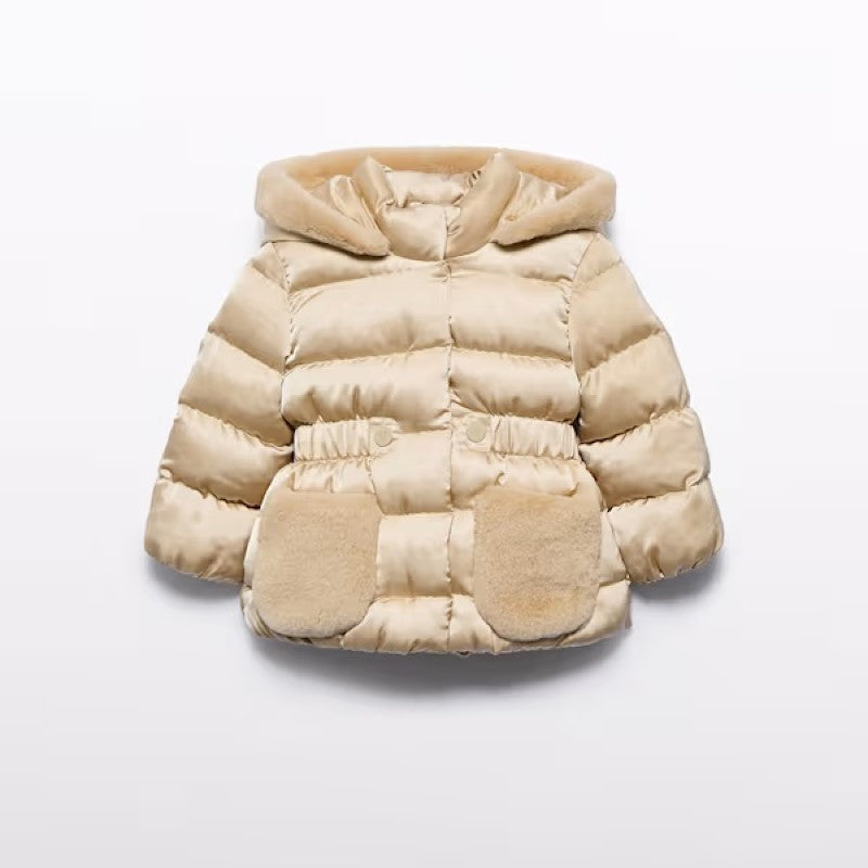 Kapşonlu Kürk Detayı: Baş kısmında bulunan şık ve yumuşak kürk detayı, çocuğunuzun soğuktan korunmasını sağlarken, zarif bir görünüm sunar.