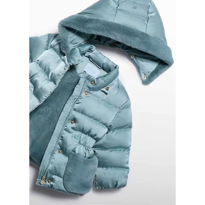 Abel & Lula Kışlık Kız Kapşonlu Kürklü Mont Yeşil