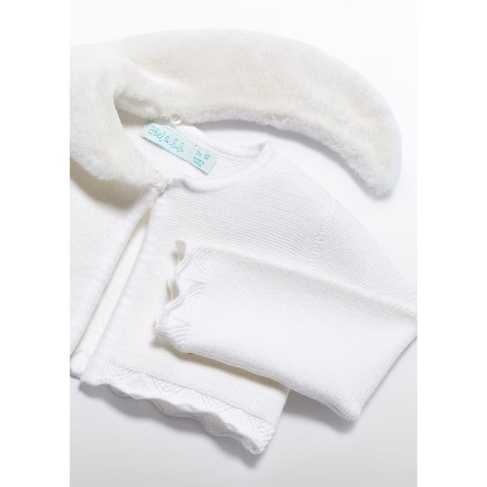 Abel & Lula Kışlık Kız Kürklü Örme Hırka Ceket Ekru
