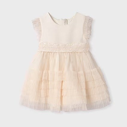 Abel Lula Yazlık Kız Bebek Abiye Elbise Ekru