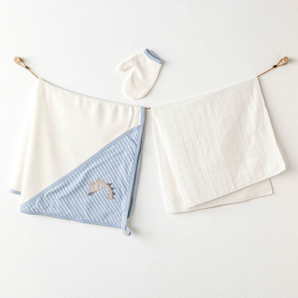 Andywawa Erkek Bebek Banyo Havlu 3'lü Set- Dino Ekru