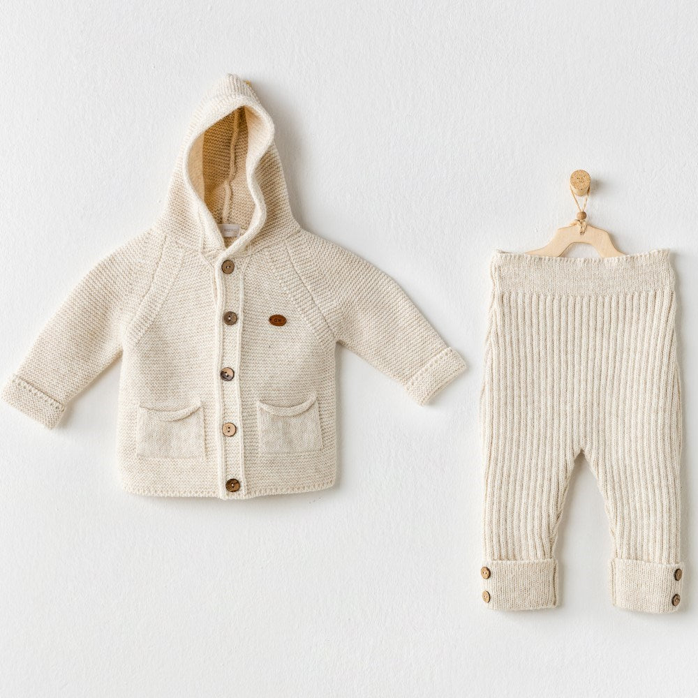 Andywawa Kışlık Erkek Bebek Örme Kapşonlu Ceket Pantolon 2'li Set Gri