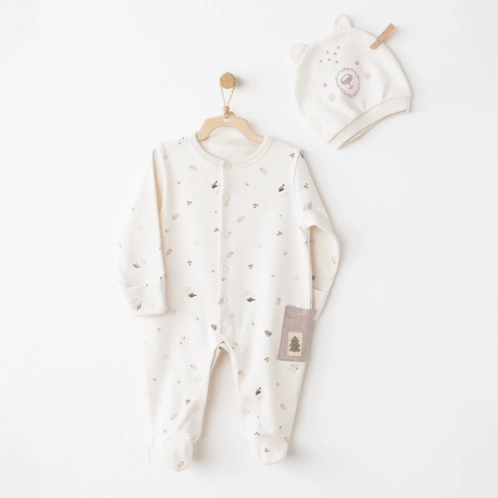 Andywawa Kışlık Erkek Bebek Şapka Tulum 2'li Set Ekru