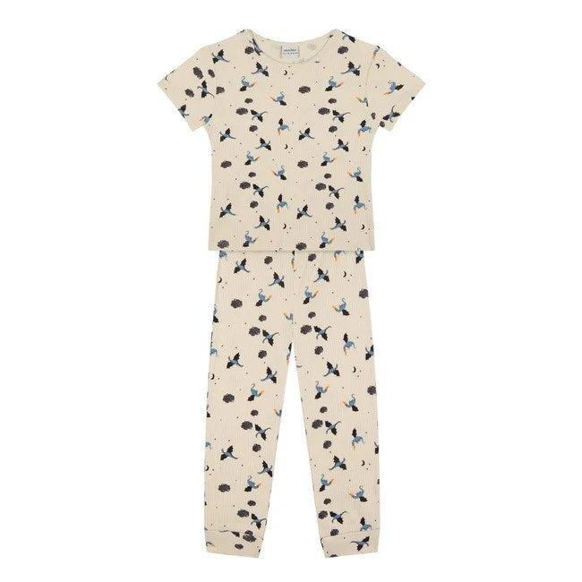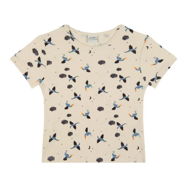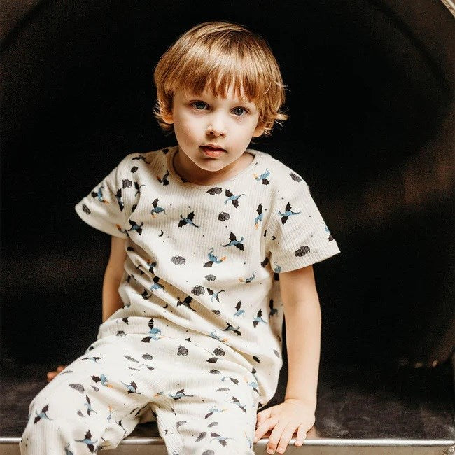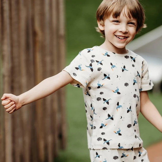 Antebies Erkek Çocuk Kısa Kollu Organik Pijama Takımı- Ejderha Ekru