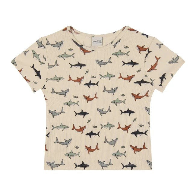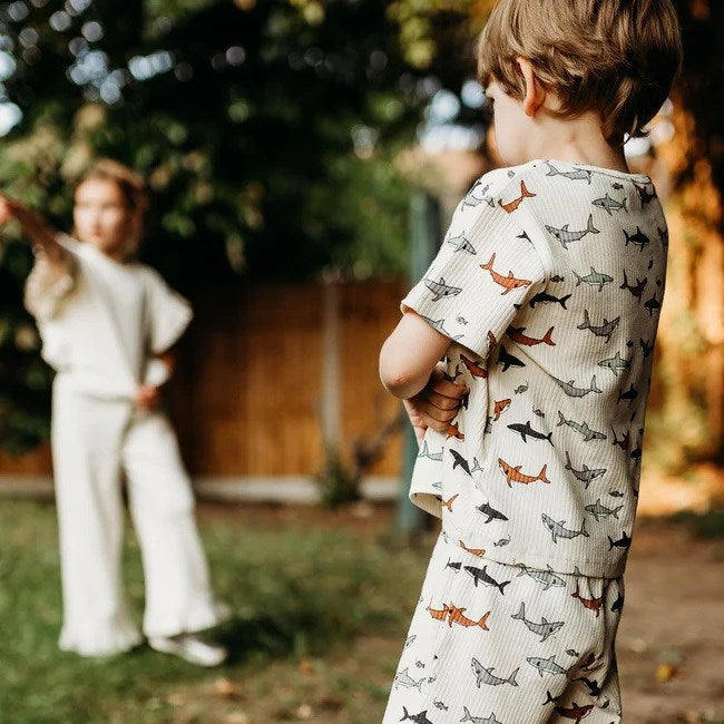 Antebies Erkek Çocuk Kısa Kollu Organik Pijama Takımı- Köpekbalığı Ekru