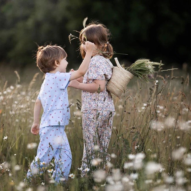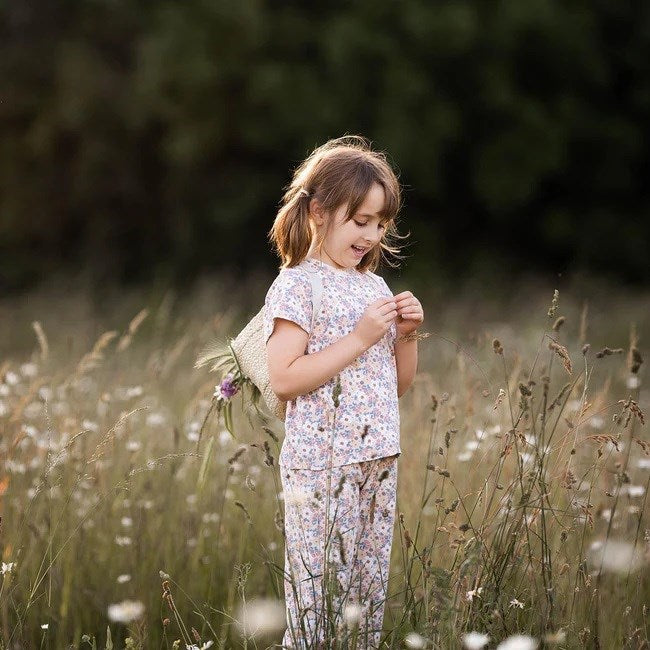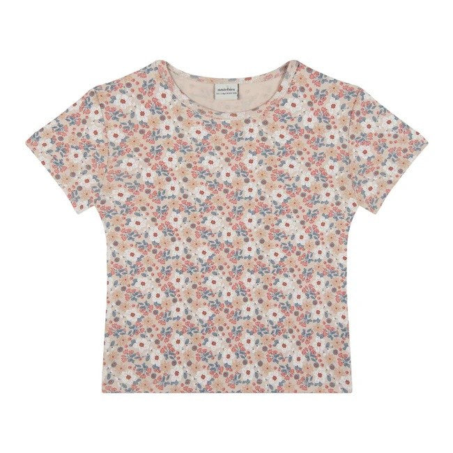 Antebies Kız Çocuk Kısa Kollu Organik Pijama Takımı- Yaz Buketi Ekru