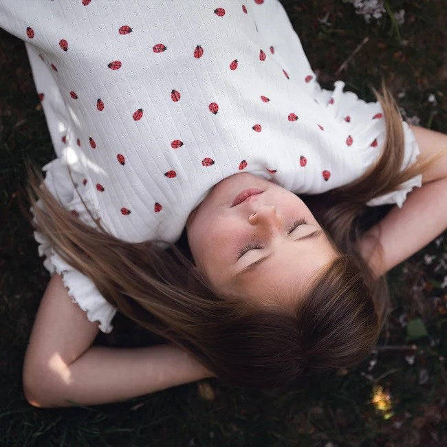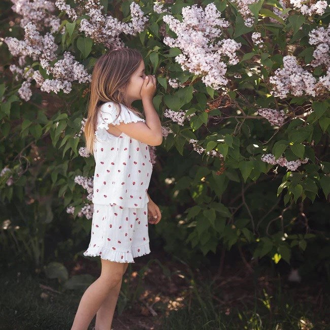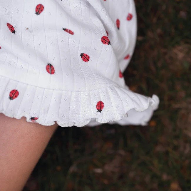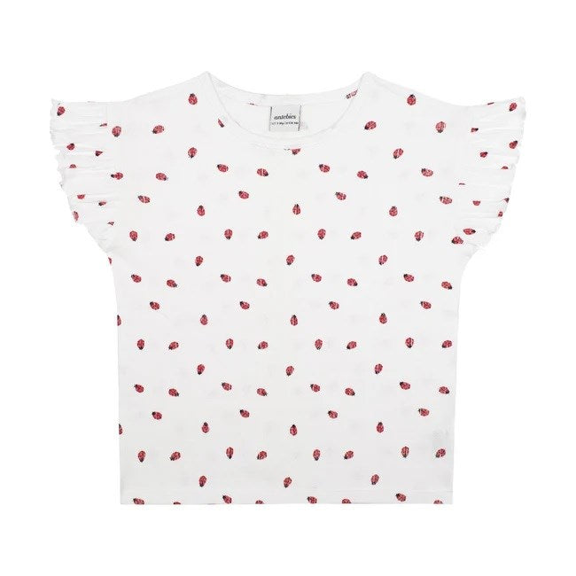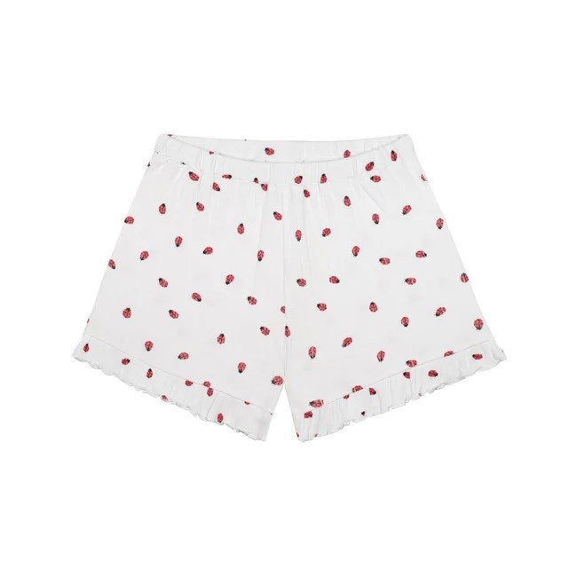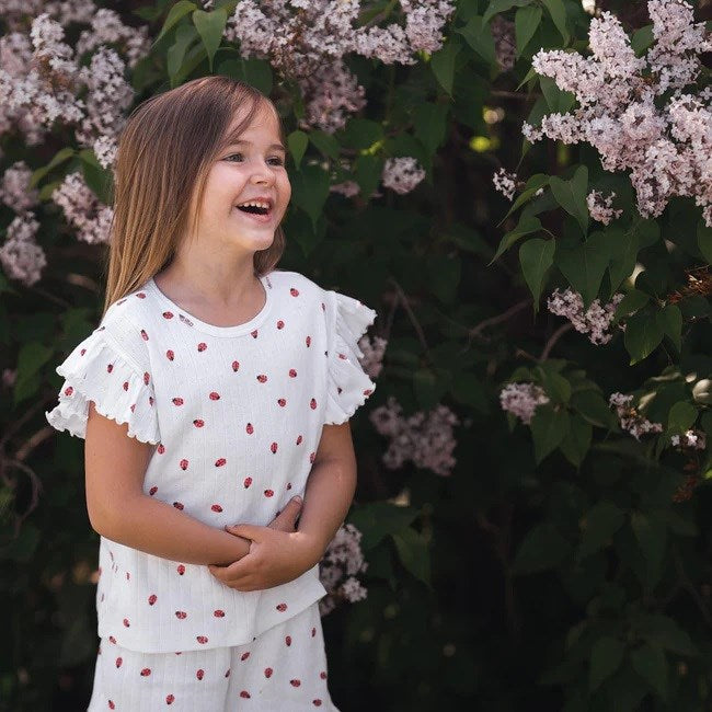 Antebies Kız Çocuk Kısa Kollu Şortlu Organik Pijama Takımı- Uğur Böceği Ekru