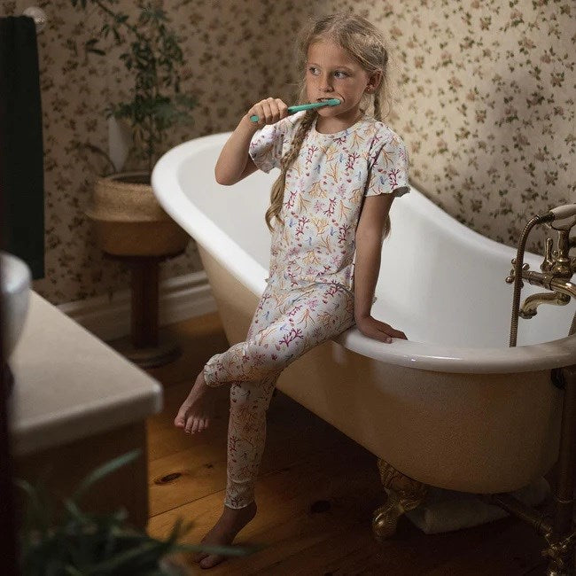 Antebies Kız Çocuk Kısa Kollu Taytlı Organik Pijama Takımı- Mercan Mavi