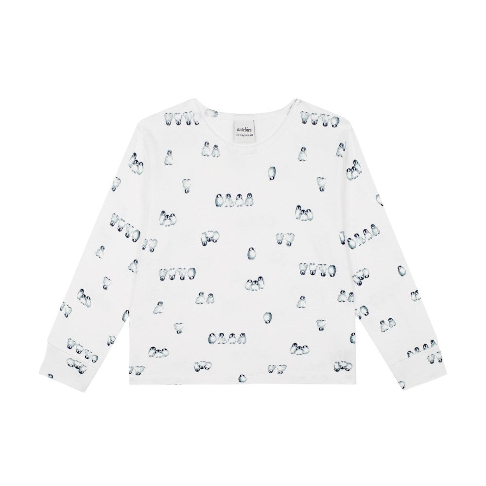 Antebies Penguen Adası Organik Uzun Kollu Pijama Takımı Beyaz