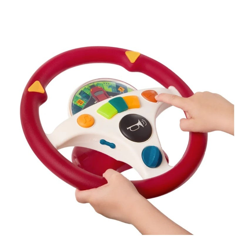 Bu renkli direksiyon ile araba sürme oyunu ince motor becerilerini ve el-göz koordinasyonunu geliştirir.