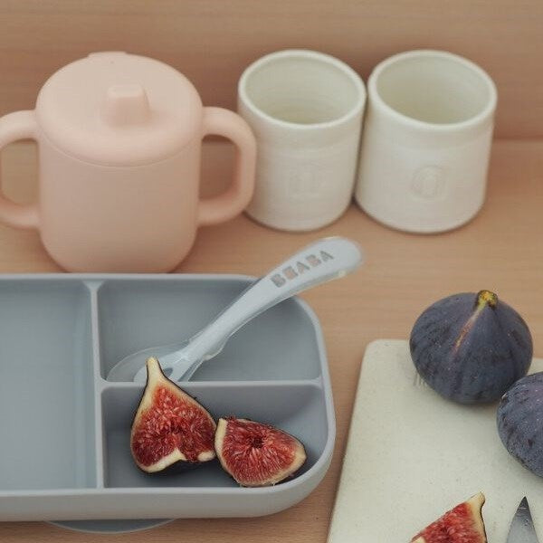 Beaba Bölmeli Öğrenme Yemek Tabak Seti (4 Parça- Pembe Bardak)