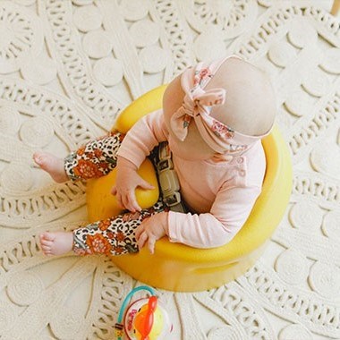 Bumbo® zemin koltuğu, bebeğinizin beslenme veya aktif oyun zamanı sırasında dik oturmasına yardımcı olmak için konturlu destek sağlar.