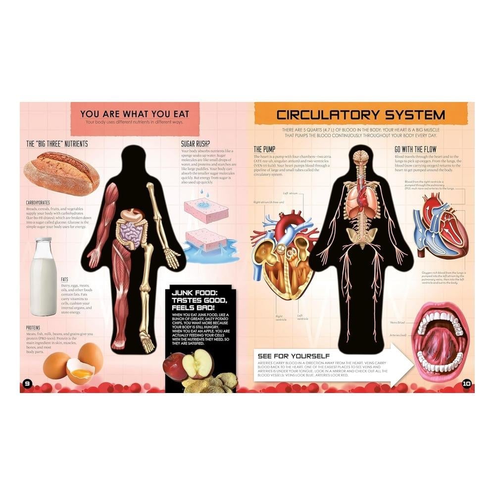 Inside Out Human Body, her bölümün merkezinde yer alan katmanlı 3 boyutlu bir insan vücudu modeli sunuyor. Bu model, temel organları ve işlevlerini ortaya koyarken, eğlenceli ve bilgilendirici metinler vücudun nasıl çalıştığını açıklıyor.