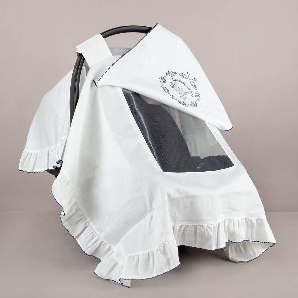 ChiMayys Baby Asil İndigo Tığ İşi Süslemeli Fırfırlı Puset Örtüsü