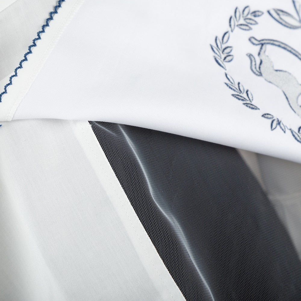 Asil İndigo Çelenkli At Nakışlı İndigo Tığ İşi Süslemeli Fırfırlı Puset Örtüsü