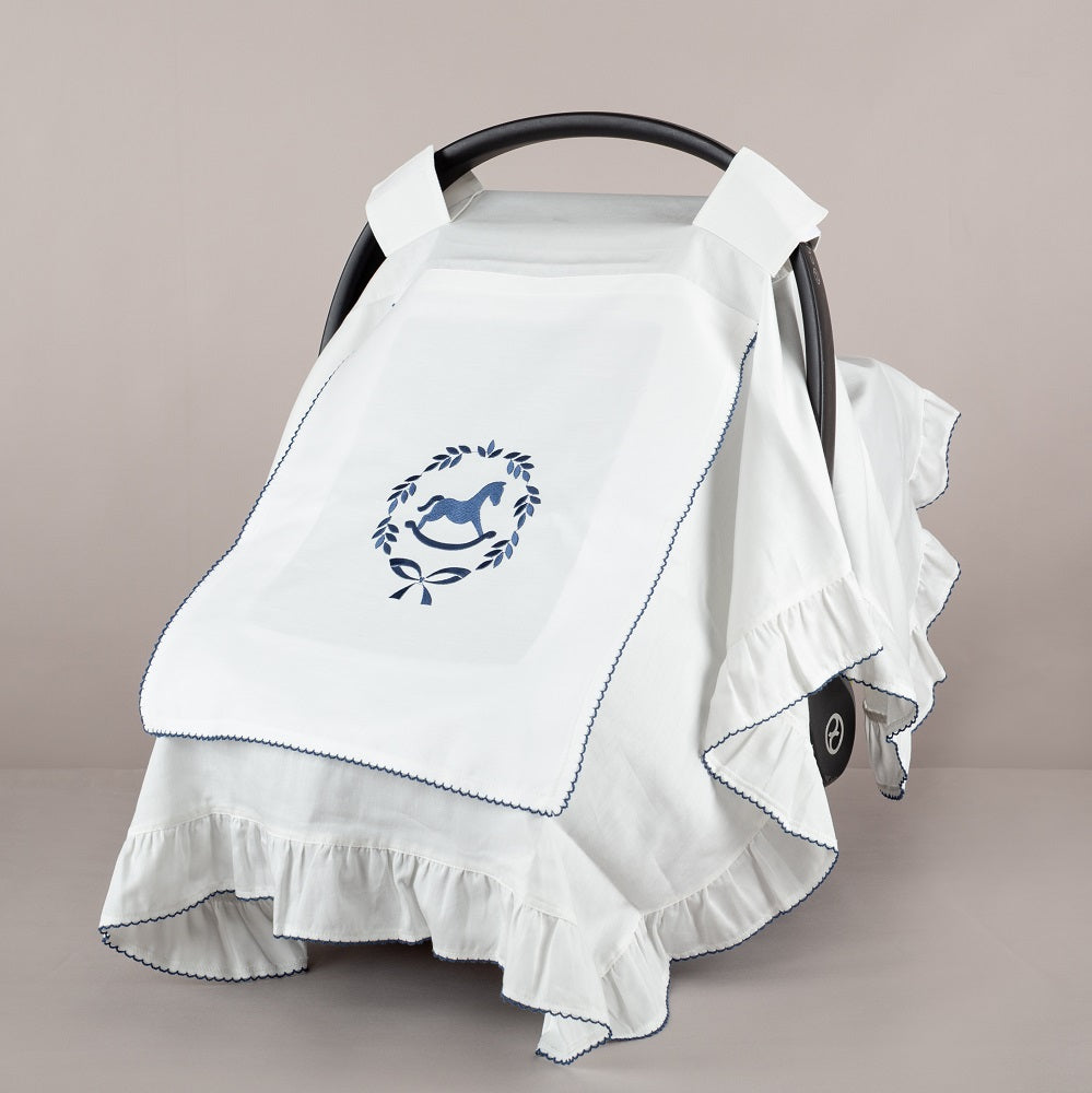 - İndigo çelenkli at nakışlı, indigo tığ işi süslemeli fırfırlı puset örtümüz; hastane çıkışında bebeğinizi evinize getirirken, prenslere özel bir zarafetle tasarlanmıştır. Bebeğinizin açık havada güvenli uykularına eşlik ederken, şık ve zarif tasarımıyla annelerimizin gönlünü fethetmektedir.