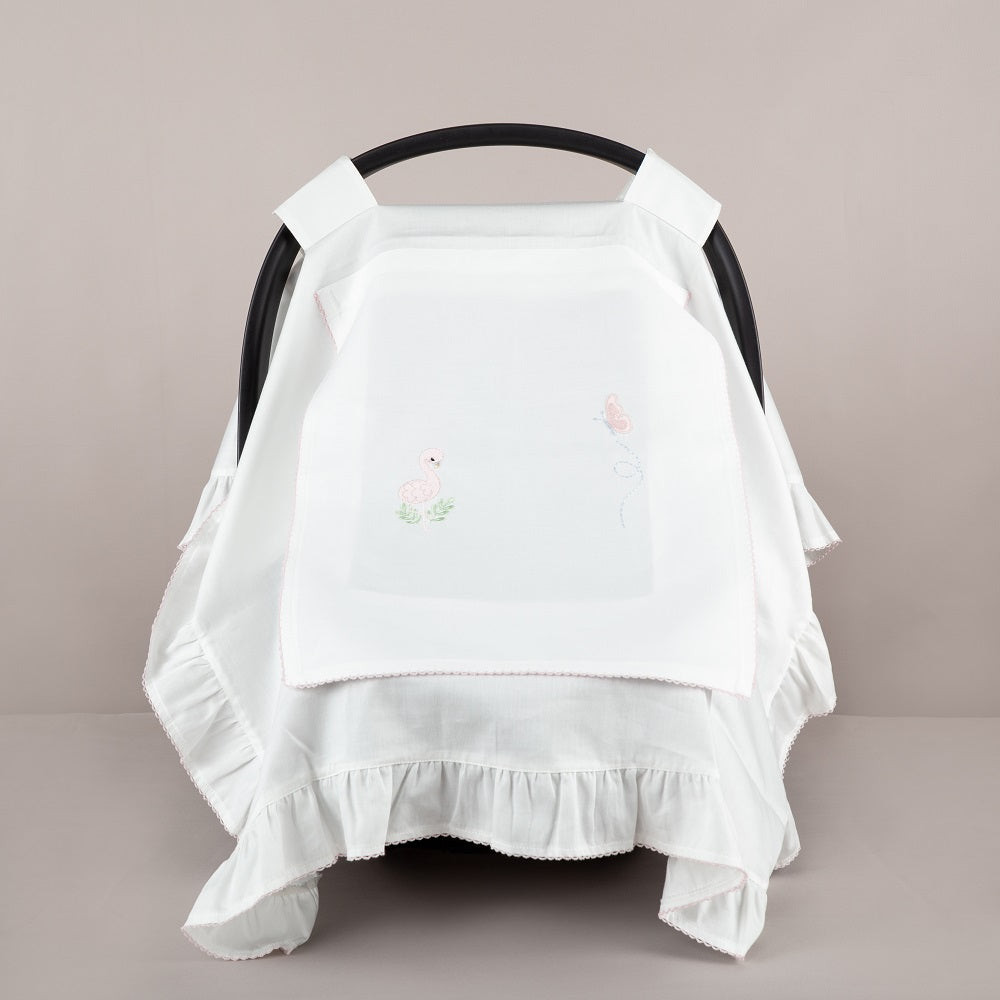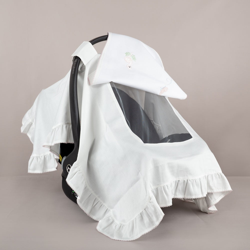 ChiMayys Baby Nazenin Flamingo Nakışlı Pembe Tığ İşi Süslemeli Fırfırlı Puset Örtüsü