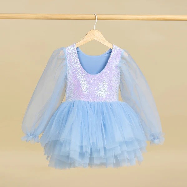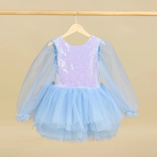 Bu zarif mavi elbise her yaştaki kız çocuğu için unutulmaz anların vazgeçilmez bir parçası olacaktır.