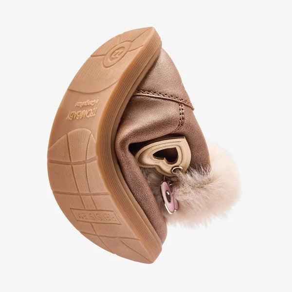 Bronze Charm Kürk Botlar , şıklık ve konfor arayan minikler için mükemmel bir ayakkabıdır. Zarif bronz tasarımı ve yumuşak kürk detaylarıyla bu botlar, modern bir görünüm sunarken aynı zamanda mükemmel bir konfor sunar.
