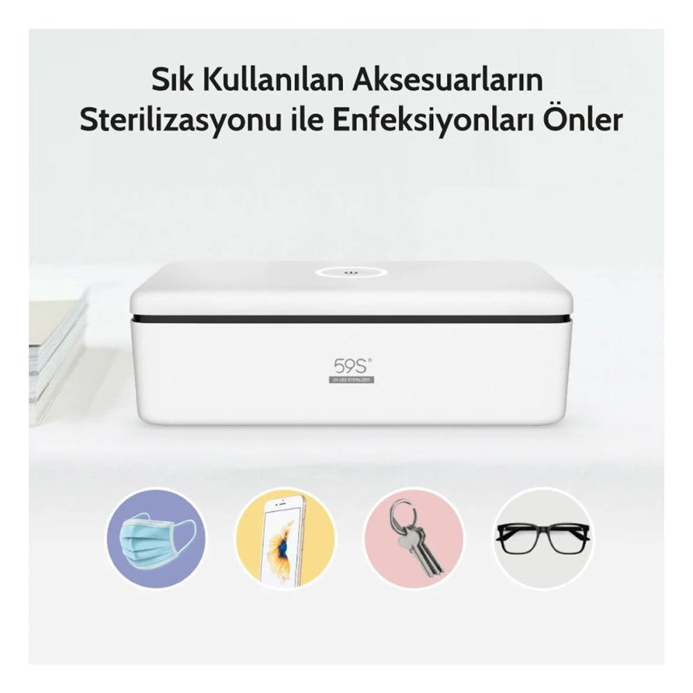 59S S2 Ultraviyole (UVC) Mini Sterilizasyon Kutusu Evde, ofiste, otelde veya kafede kullanım için idealdir.