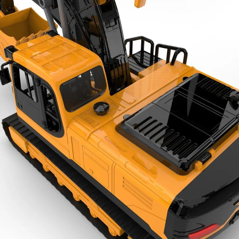 Ön kepçe dönebiliyor, arka ekskavatör kolu hareketli – gerçekçi inşaat oyunları için.