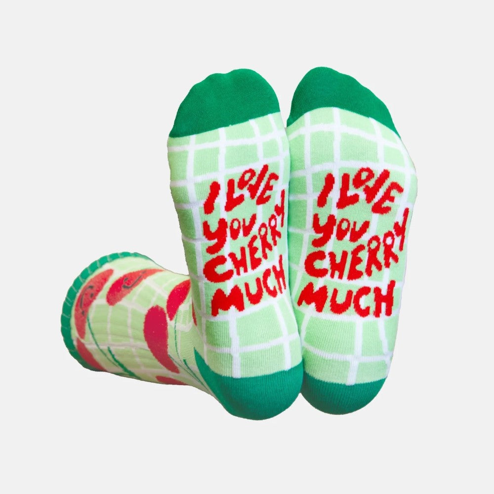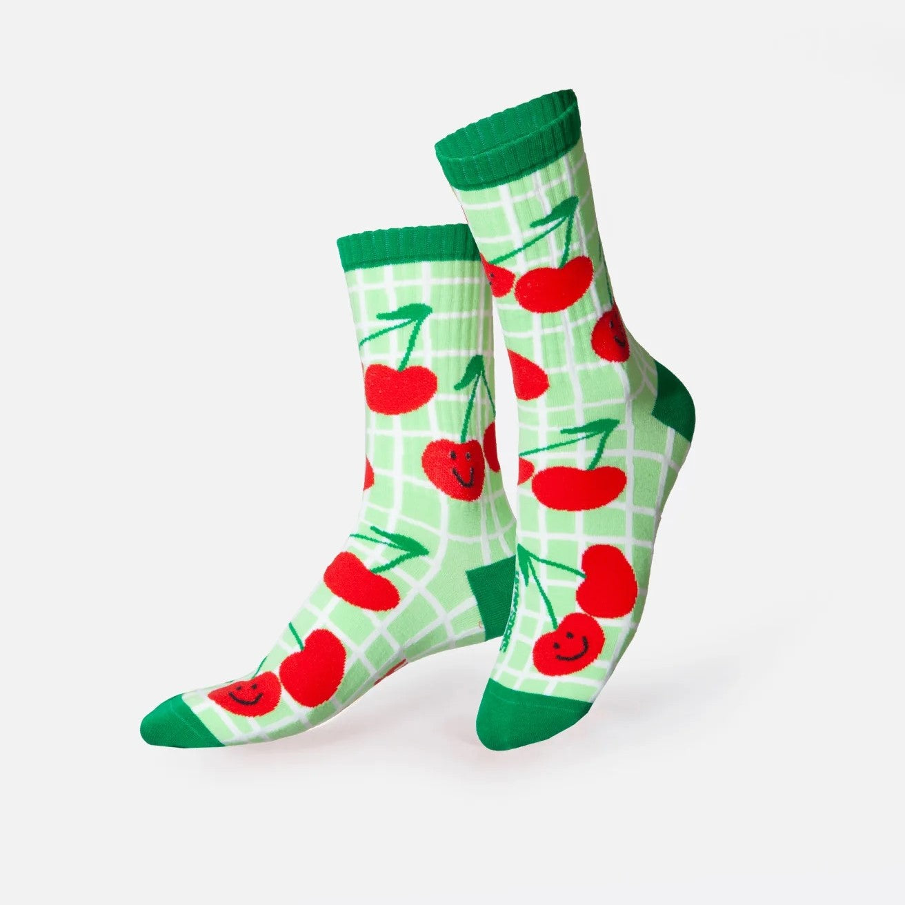 Kiraz gibi patlayan tarz! Bu canlı kırmızı çoraplar hem cesur hem tatlı — dikkat çekmeyi sevenler için en meyveli seçim.