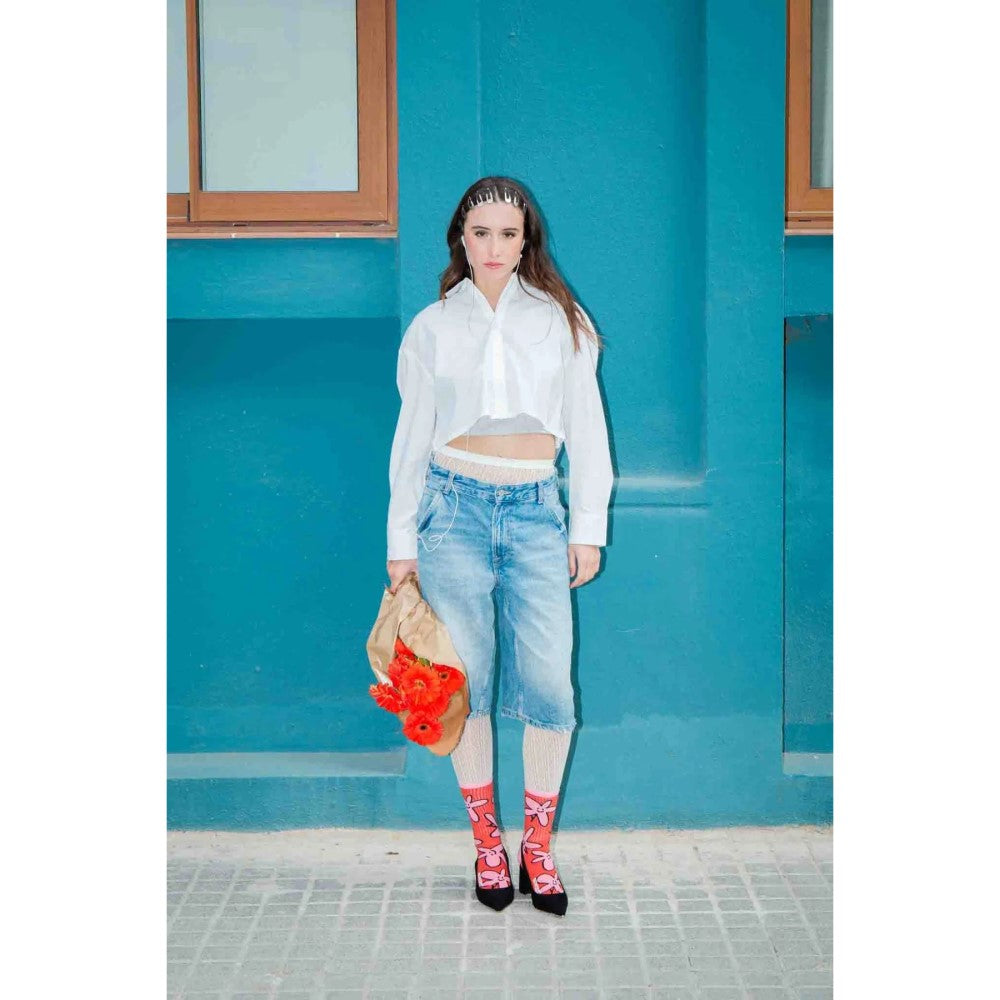 Mutlu ayaklar için taze bir seçim! Bu çiçek desenli çoraplar, her adımda açıyor ve neşeli ruhu ile keyifli kombinlere eşlik ediyor.