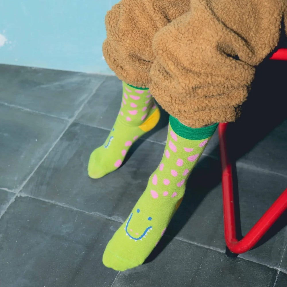 Şaşkın bir timsah şeklindeki bu eğlenceli çoraplar, minik ayakları tüm gün hem sıcak hem de keyifli tutar. Her adımda kahkaha ve neşeli tıkırtılar için hazır olun! Chomp chomp!