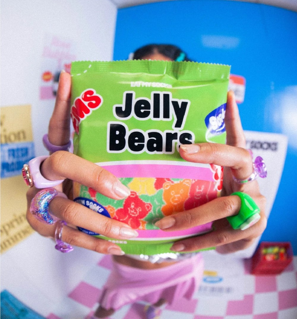 İçindeki çocuğu serbest bırak! Jelly Bear çoraplar, eğlenceli cazibesi ve canlı renkleriyle en sevdiğin jelibonlar kadar tatlı. Her kombine eğlenceli bir dokunuş katmak için mükemmel.