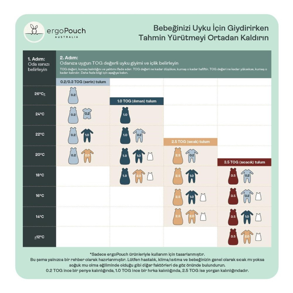 ergoPouch, güvenli, sıcak ve kolay yenidoğan uykusu için ihtiyacınız olan her şeyi sunar. Organik ve toksik olmayan ödüllü uyku giysilerimiz, sağlıklı büyüme ve gelişimi desteklemek için özel olarak tasarlanmıştır. Kundak Tulumlarımız, kolay kullanımı ve güvenliği bir arada sunar. 0.2 TOG ürünümüz, yaz aylarında 24°C ve üzeri oda sıcaklıklarında, ilk gün itibariyle kullanılabilir. Bebekleri fazla ısıtmadan sıcak tutar ve ekstra örtü gerektirmez. Paketin arkasında ÜCRETSİZ oda termometresi bulunmaktadır. 0.2 TOG Kundak Tulum, moro (çırpınma) refleksini sınırlandırırken esneklik ve hareket özgürlüğü sağlar.