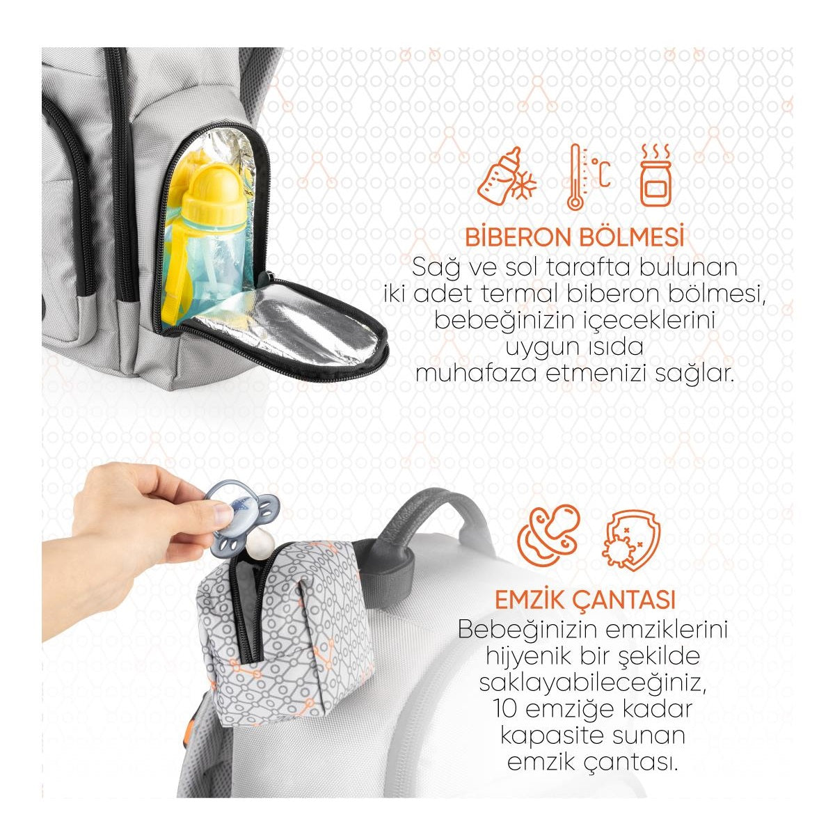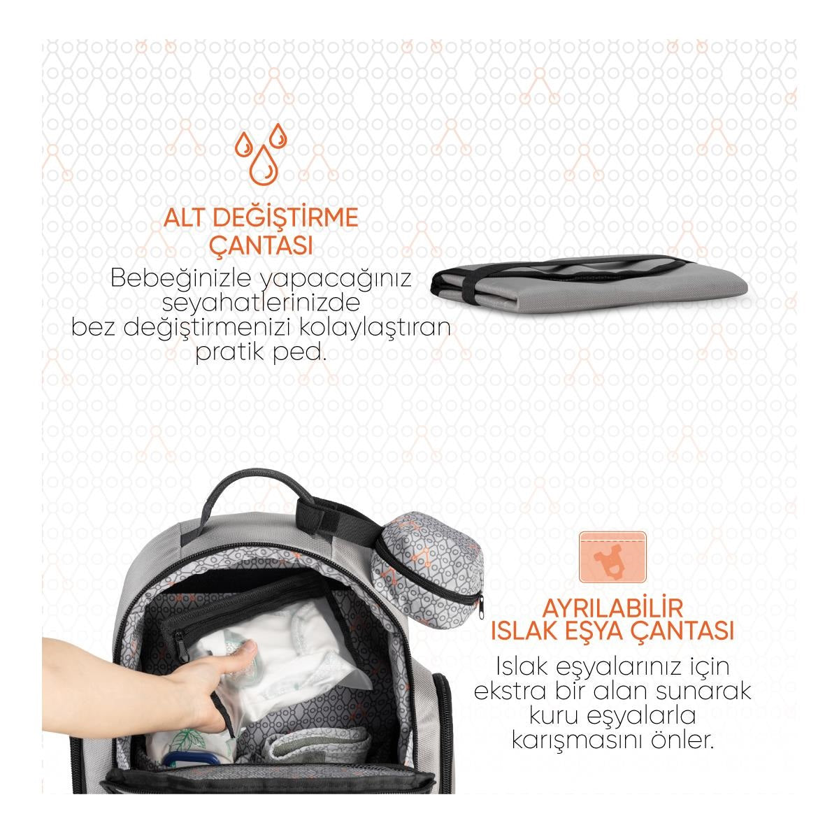 Gezenbebe Çok Fonksiyonlu Anne Bakım Çantası Gri