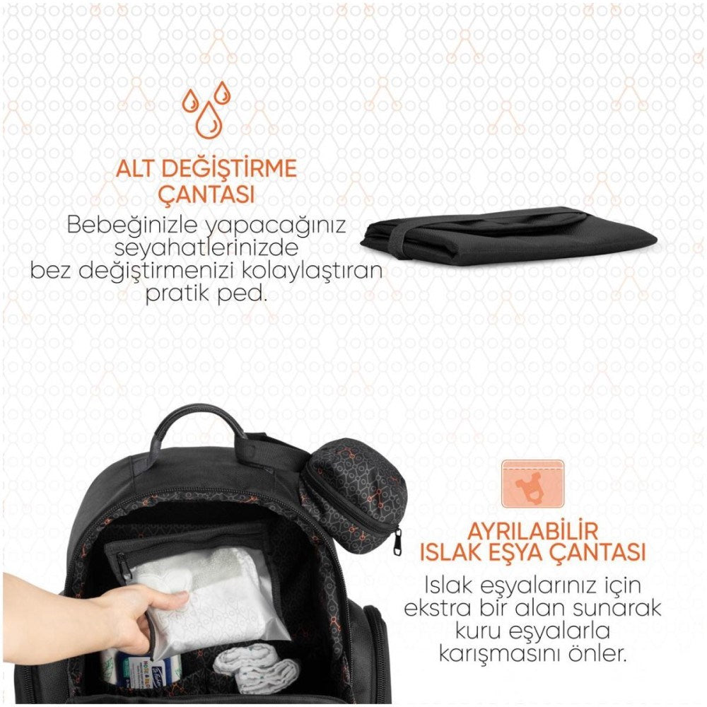 Gezenbebe Çok Fonksiyonlu Anne Bakım Çantası Siyah