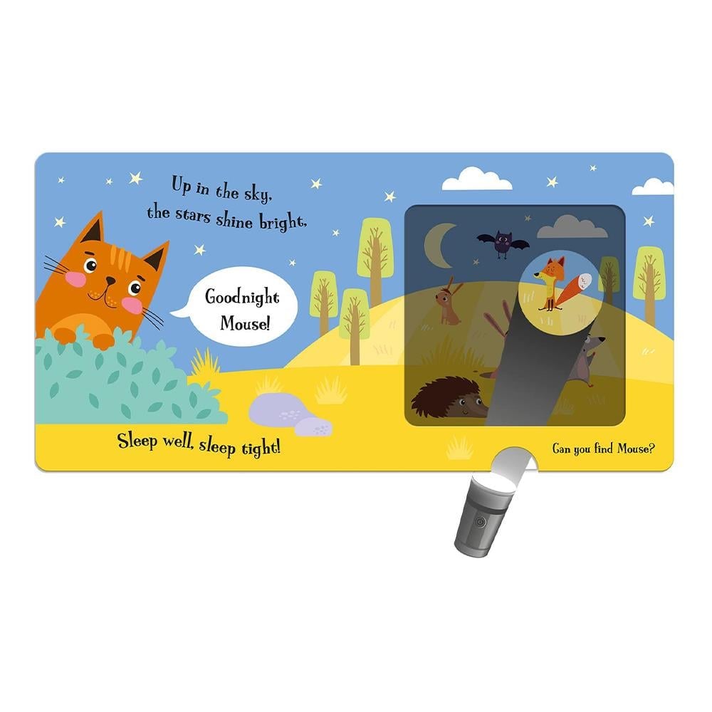 Kedi yatmaya hazır, ama önce tüm hayvan dostlarına iyi geceler demek istiyor. Gece sahnelerinin her birinde Kedinin arkadaşlarını bulmak için sihirli feneri sayfaların arasına yerleştirin ve çocukların sevinçle parladığını görün!