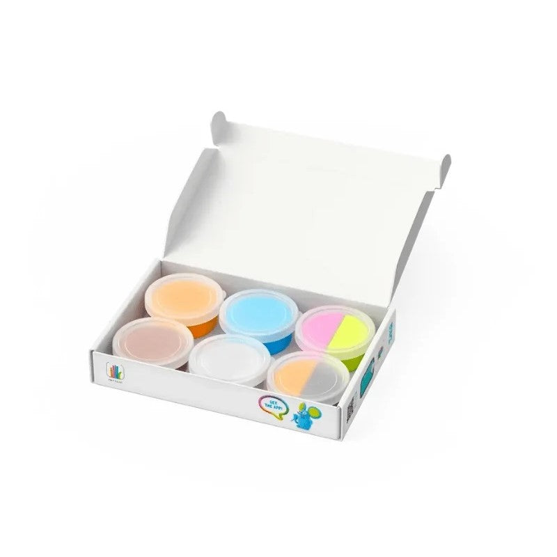 3 farklı karakter yapmak için 8 farklı renkten oluşan 6 kutu kil seti.