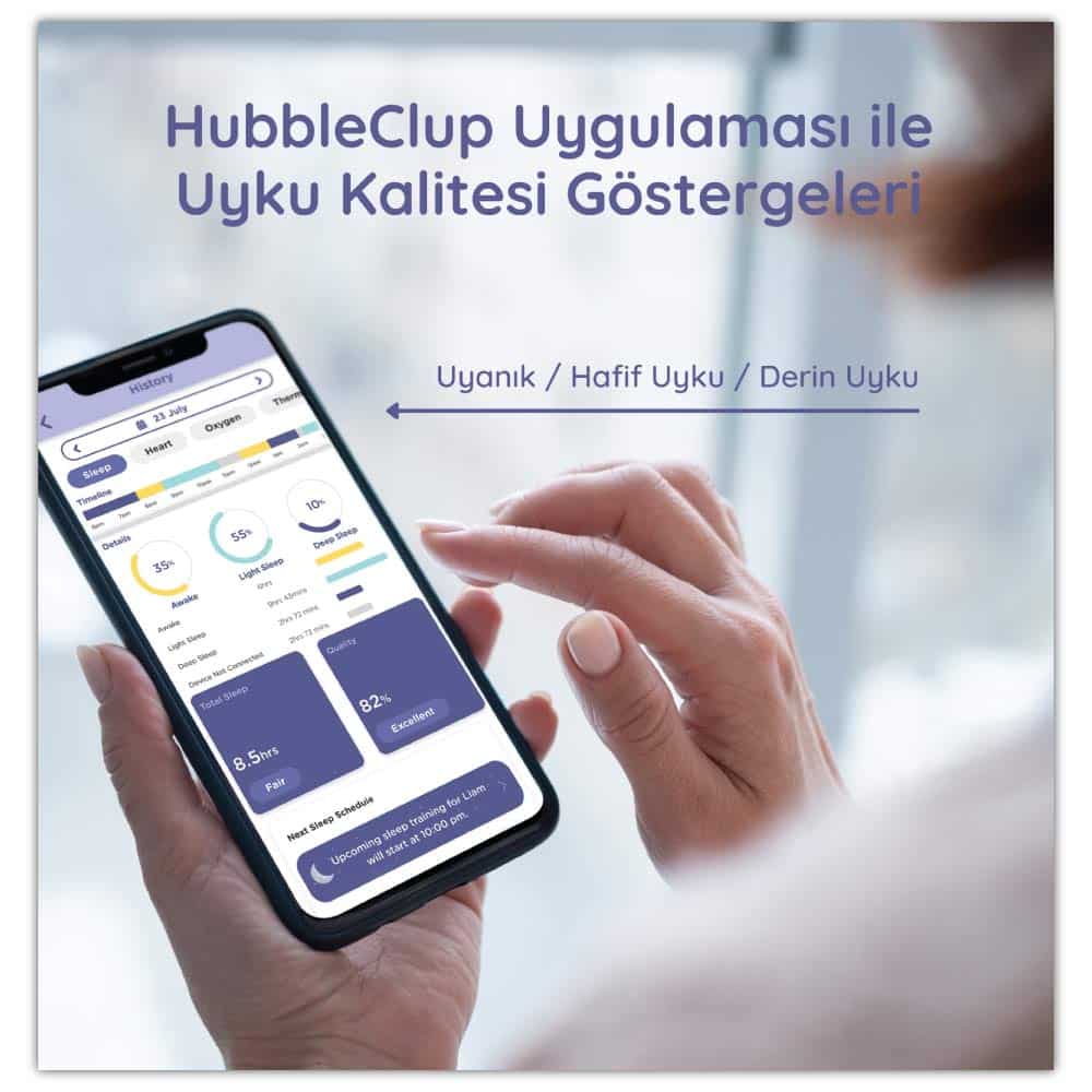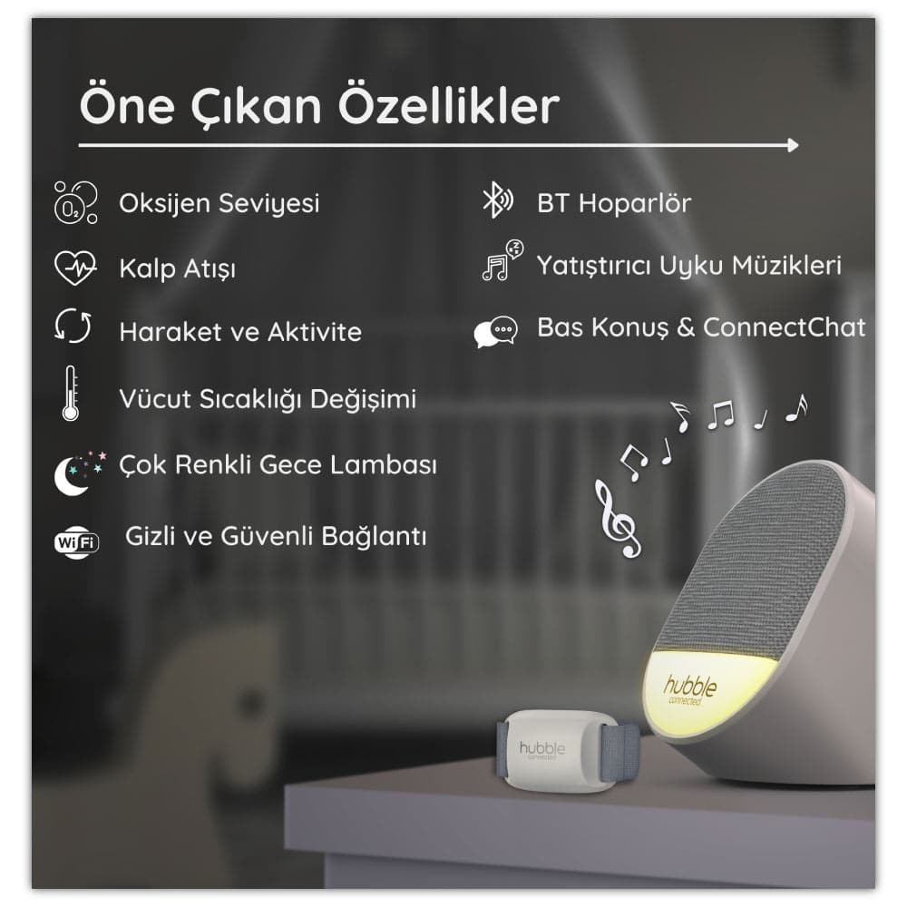 Bebeğinizin uyku kalitesi, hareketleri ve genel durumu hakkında daha fazla bilgi sahibi olmak isterseniz Hubble Guardian+ sizin için tasarlandı. Ayak bileğine yumuşak ve güvenli şekilde takılan Guardian+, bebeğinizin oksijen seviyesi, kalp atış hızı, hareket ve vücut ısısı değişimlerini takip etmenize yardımcı olur. Böylece bebeğinizin gece uykusu ve günlük aktiviteleri hakkında anlık ve güvenilir verilere ulaşabilirsiniz.