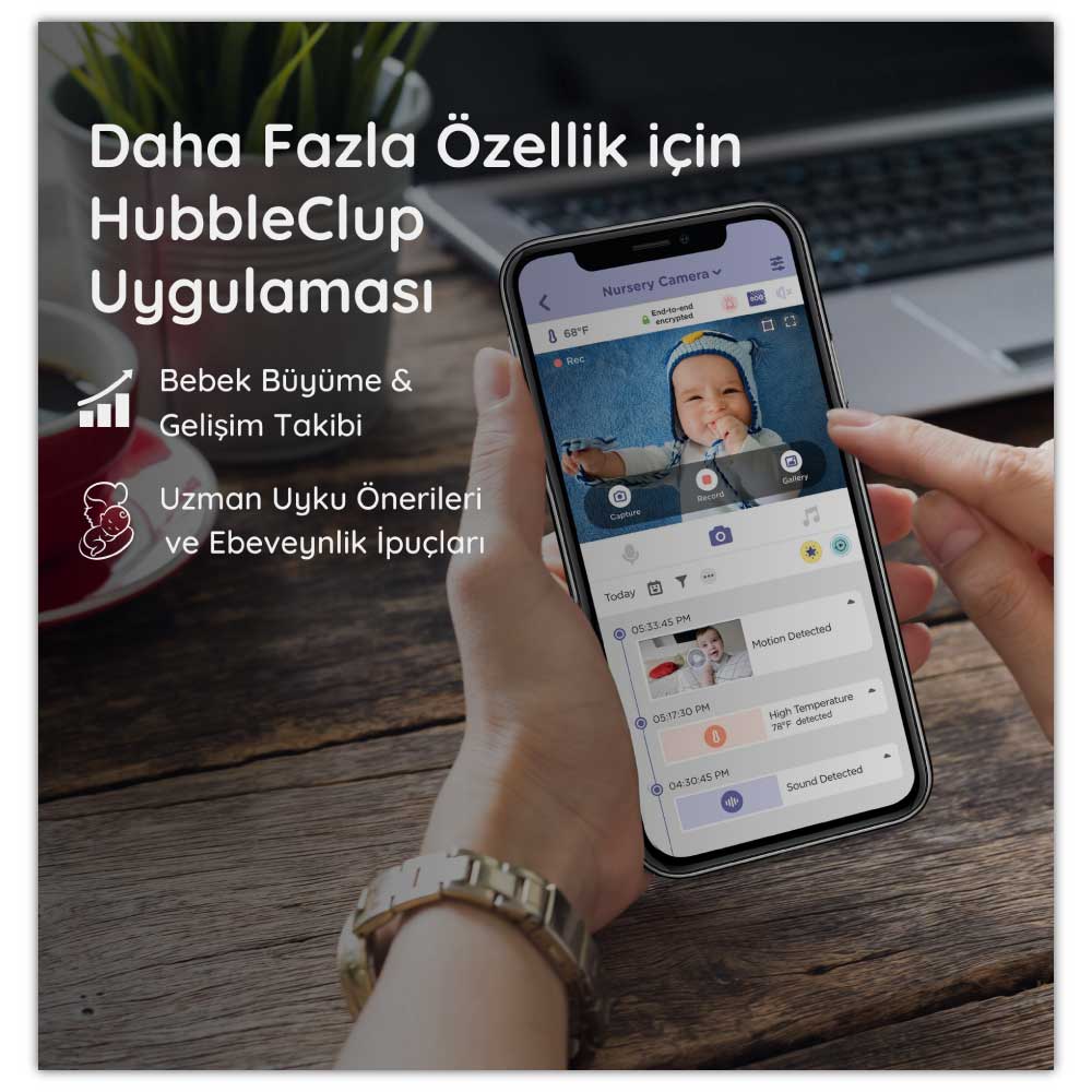 Hubble Nursery Pal Cloud, bebeğinizi günün her saatinde net şekilde takip edebilmeniz için tasarlanmış gelişmiş bebek izleme sistemidir. 5’’ HD monitör ile gece ve gündüz net görüntü sunar; Wi-Fi üzerinden telefonla da izleyebilme imkânı sağlar.