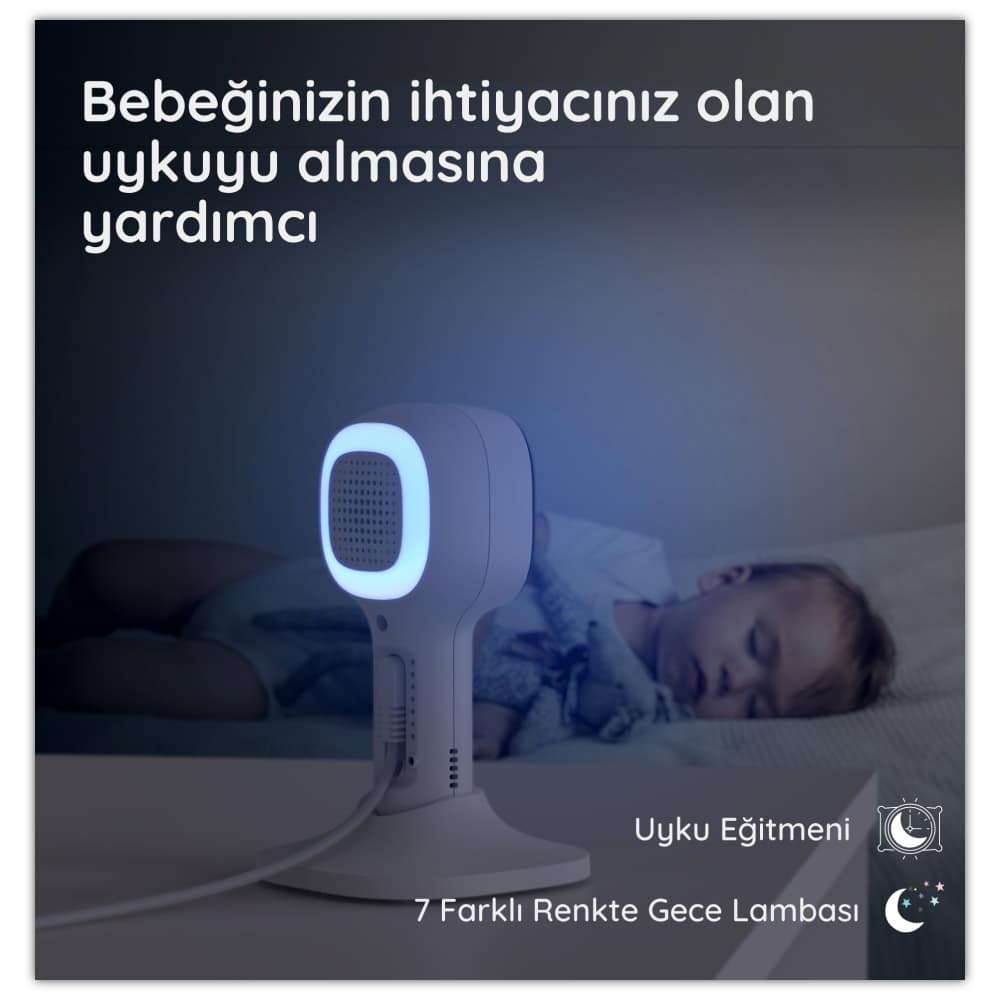 Kameradaki 7 farklı renkli gece lambası, uyku eğitmeni ve önceden yüklenmiş ninniler & doğa sesleri sayesinde bebeğinizin uyku rutinini daha kolay ve huzurlu hale getirir. Çift yönlü konuşma özelliği ve kızılötesi gece görüşü ile bebeğiniz her koşulda yakınınızda ve güvende.
