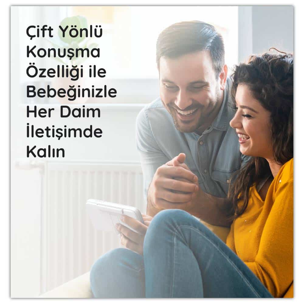 Yüksek hassasiyetli mikrofon, çift yönlü konuşma ve kızılötesi gece görüşü ile günün her anında bebeğinizle bağlantıda kalır; önceden yüklenmiş ninniler sayesinde daha sakin ve huzurlu uyku rutinleri oluşturabilirsiniz.