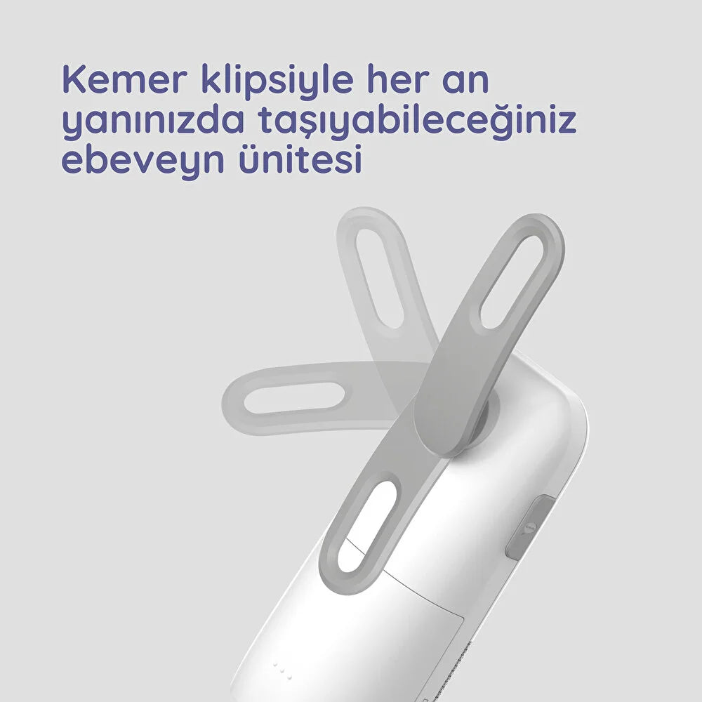 Taşınabilir Ebeveyn Ünitesi: Kemer klipsi sayesinde ev içinde özgürce hareket ederken yanınızda taşıyabilirsiniz.