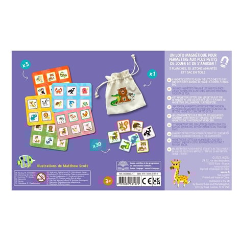 Küçük çocuklar için özel olarak tasarlanmış bu manyetik loto oyunu, 5 oyun tahtası ve 30 hayvan jetonu içeriyor. Eğlenceli ve öğretici bu oyun, çocukların hem renkleri ve hayvanları öğrenmesini hem de el-göz koordinasyonunu geliştirmesini sağlıyor.