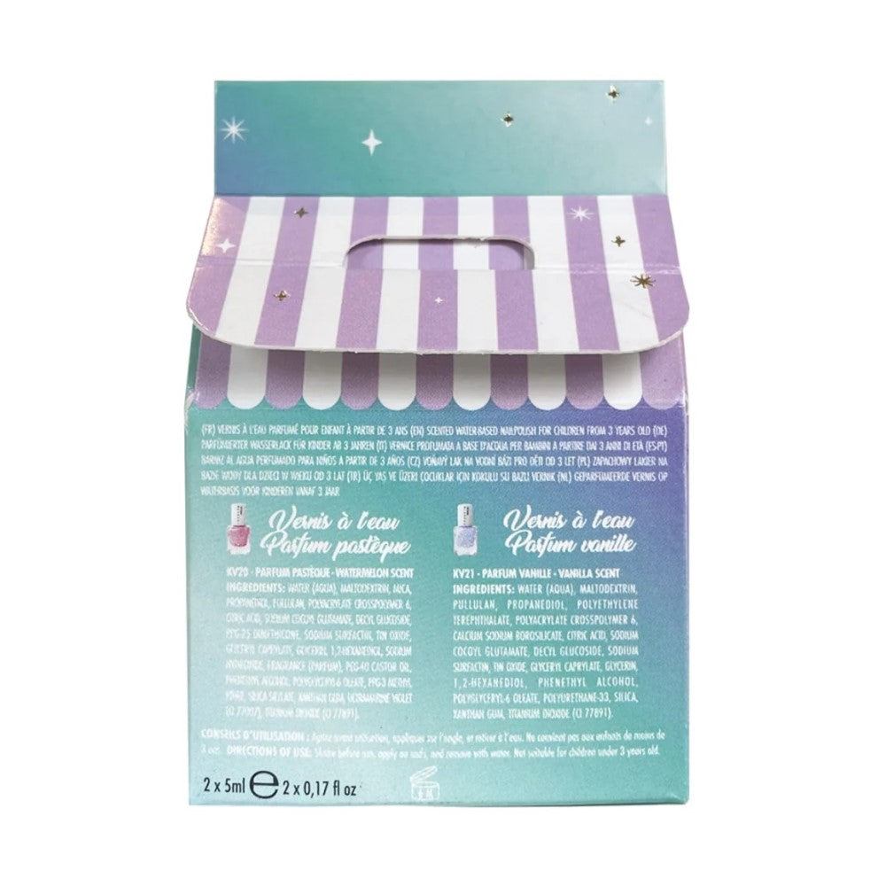 Karpuz kokulu Bebek Pembesi ve vanilya kokulu Prenses Mavisi ojelerden oluşur