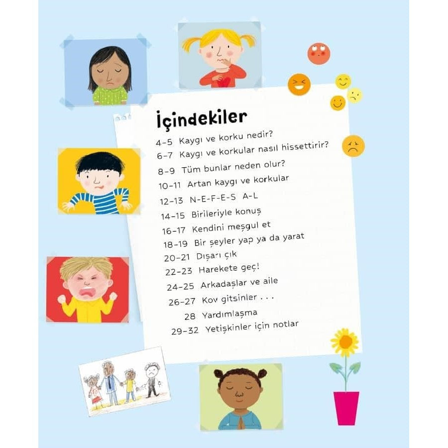 Neden kaygı ve korku duyarız? Bu duyguların bizi rahatsız etmesini engellemek için neler yapabiliriz? Duyguları olabildiğince basit bir dille tanıtan bu kitap, küçük çocukların günlük hayatta yaşadıkları endişeleri anlamalarına ve bu duyguları yönetmelerine yardımcı olacak.