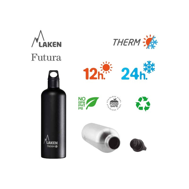 Futura paslanmaz çelik 18/8 termos şişe, içecekler için 24 saate kadar soğuk ve 12 saate kadar sıcak optimum termal performans sunar.
