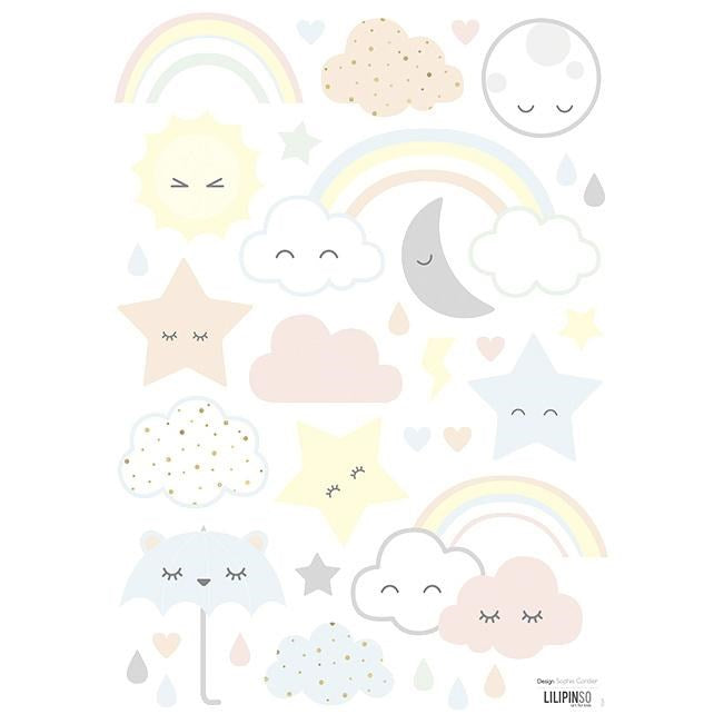 Lilipinso Bebek Odası Çıkartmalar Gülen Bulut Yıldız ve Gökkuşağı 30x42 cm STD