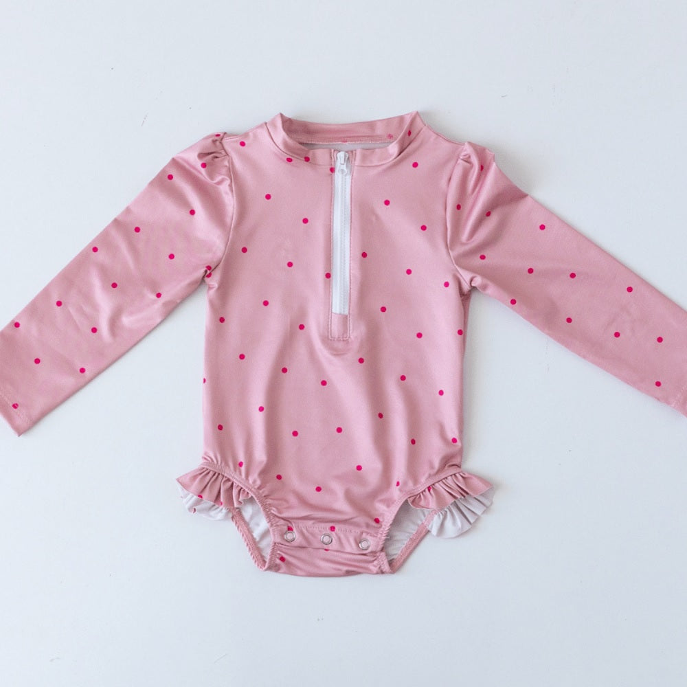 Mama Yoyo Önden Fermuarlı - Alttan Çıtçıtlı Mayo Puantiye Pembe