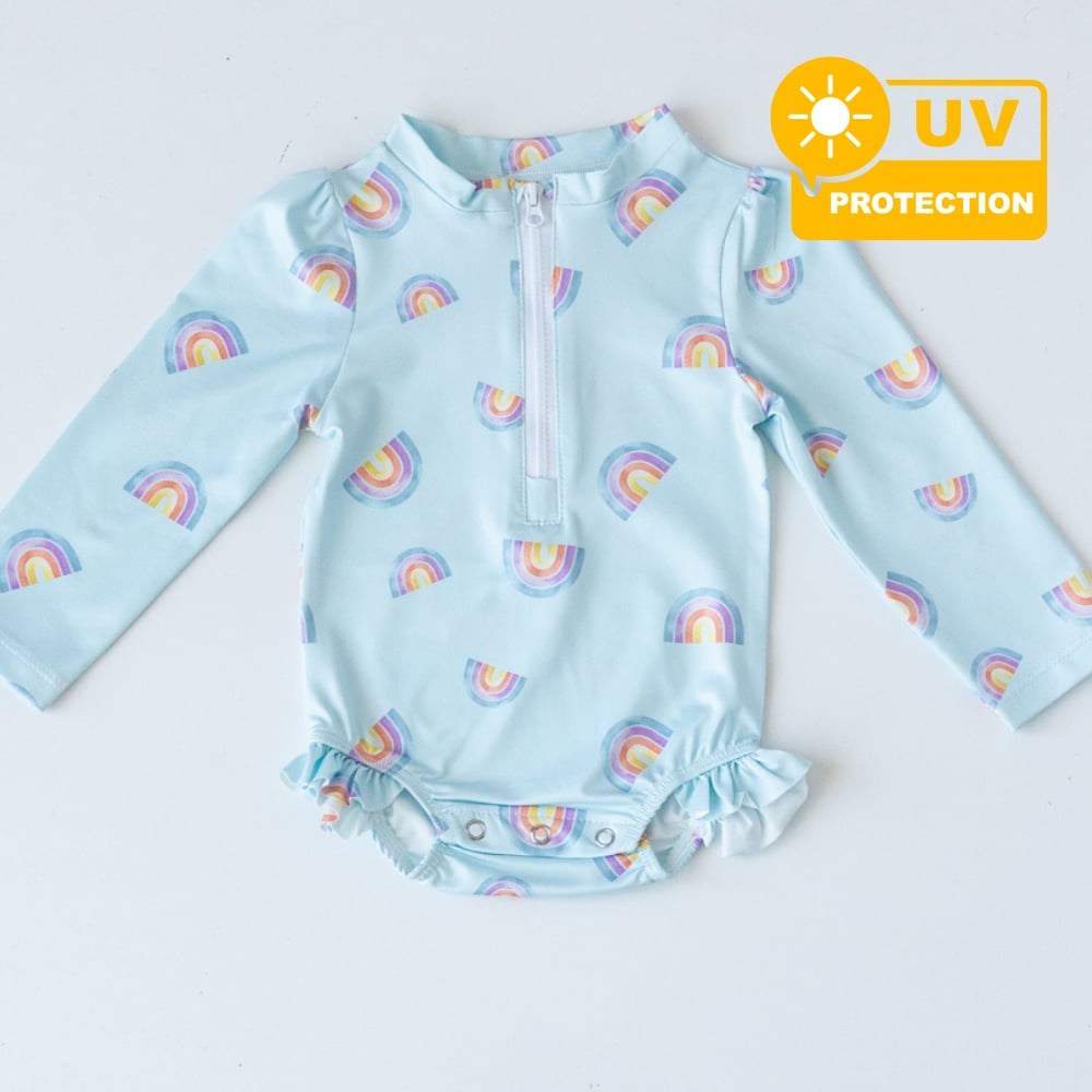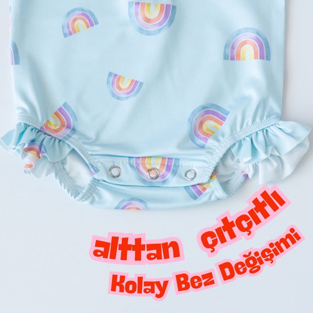 Mama Yoyo Önden Fermuarlı Çıtçıtlı Mayo- Gökkuşağı Mavi
