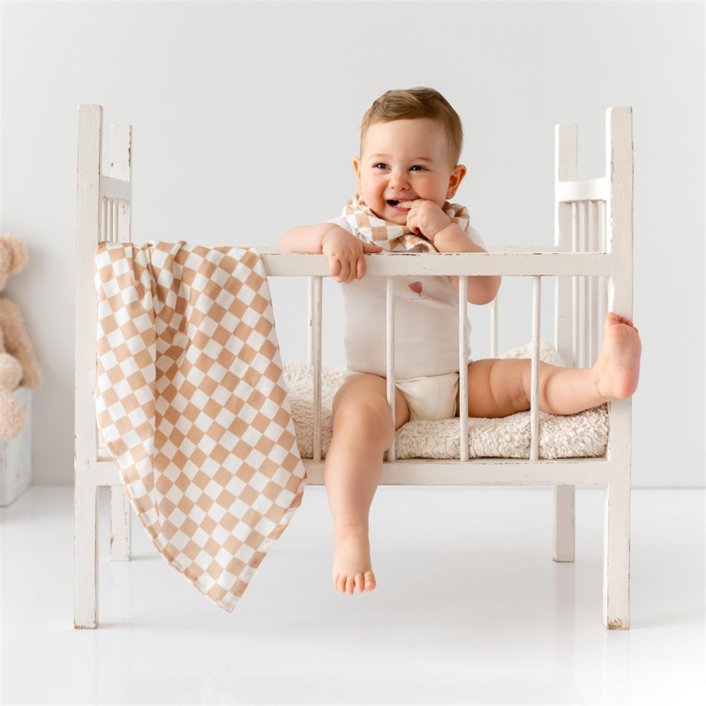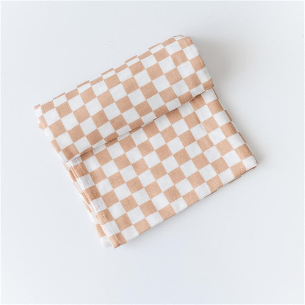 Mama Yoyo Organik Müslin Örtü - Kahve Dama 100*100 cm