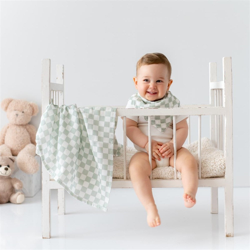 Mama Yoyo Organik Müslin Örtü - Mint Dama 100*100 cm